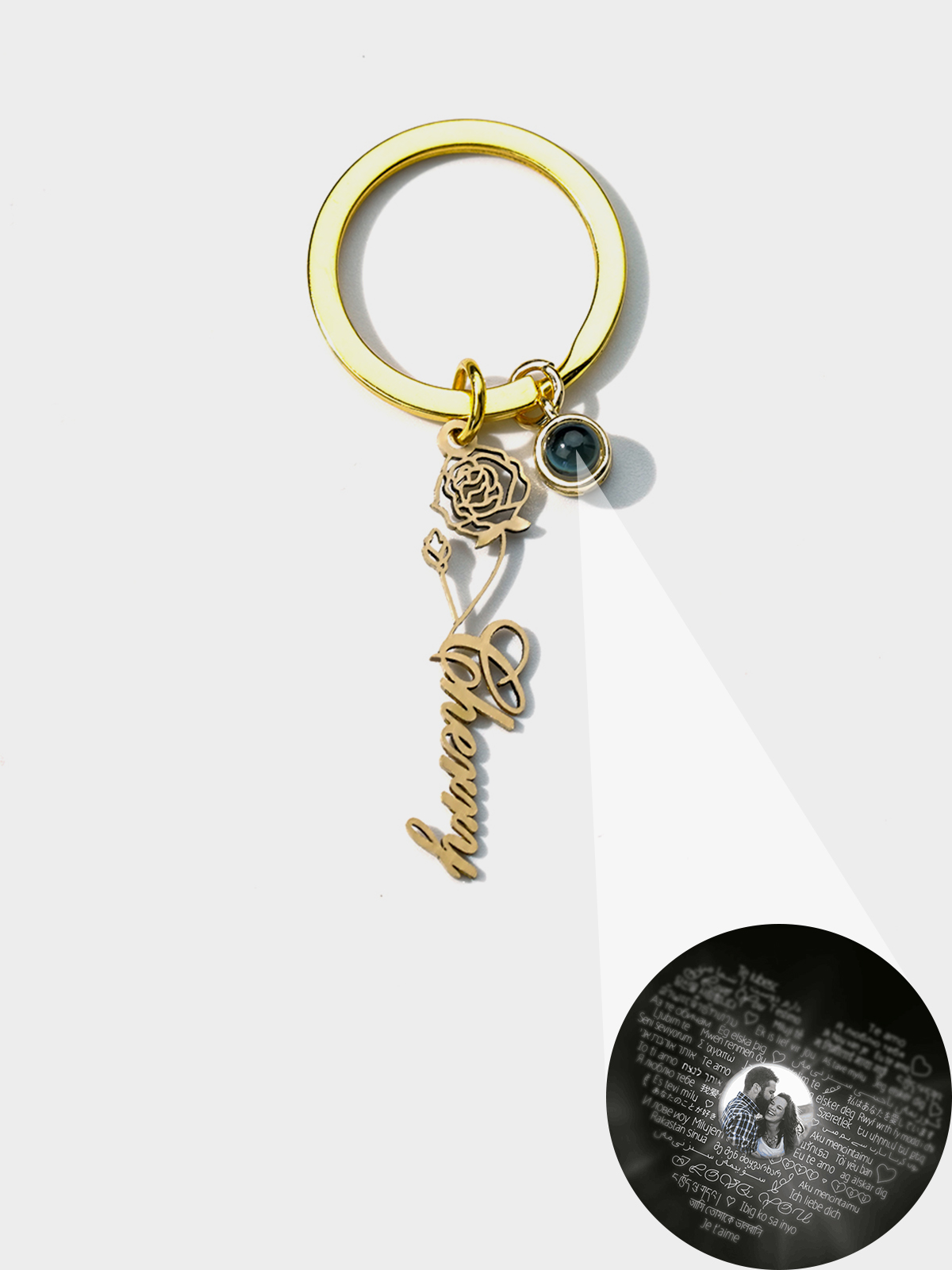Personalized Photo Projection Keychain Birth Flower Keychain