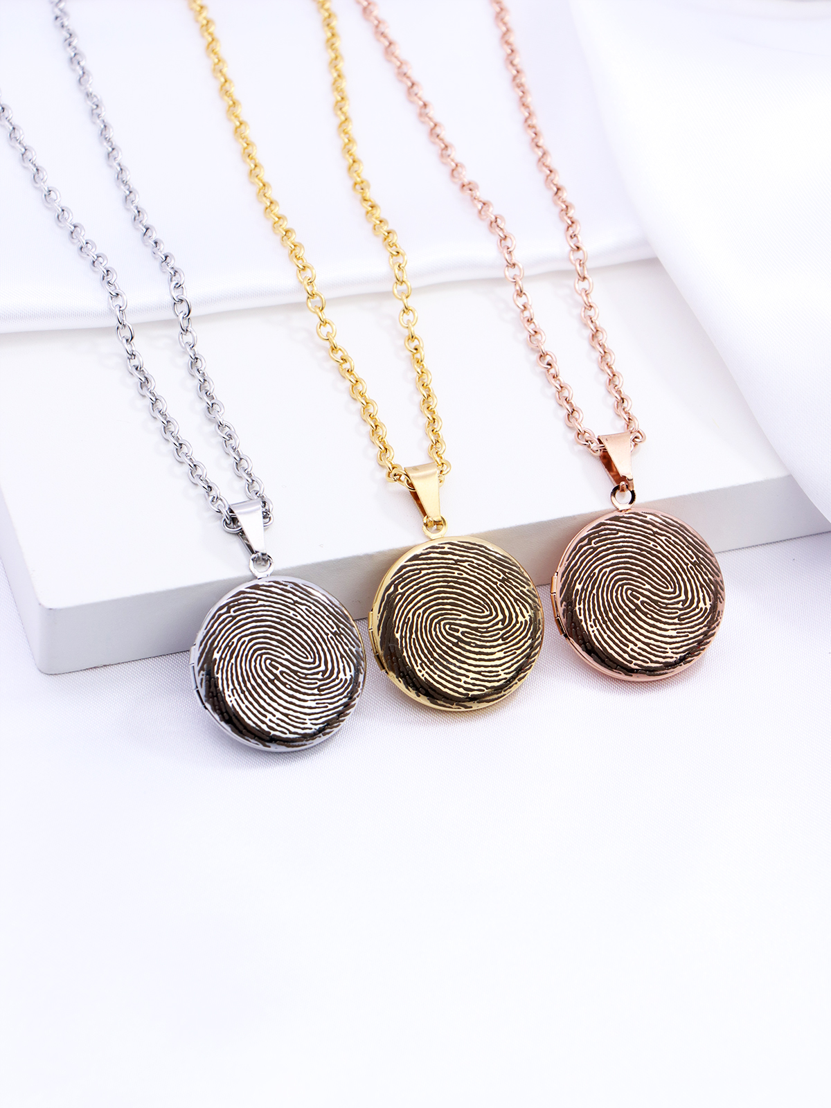 This Personalized Round Fingerprint Locket for Photo Necklace is great for everyday wear. Customize with your own pictures to make a gift she’ll cherish forever. This one-of-a-kind locket makes a heartfelt gift for loved ones, or a stylish addition to your own jewelry collection.